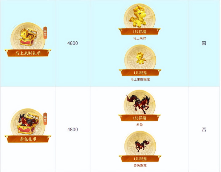 新春礼盒发售:魏、蜀、吴、群英四套三国主题锦衣及祥瑞“马上来财”、“赤兔”上架。购买后可进行 “换购”(如赤兔加钱换的卢)。